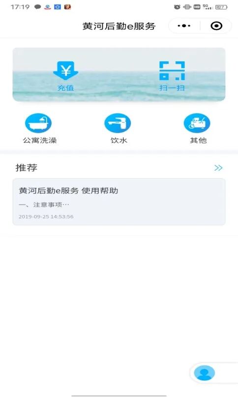 (2)扫码接水,每次预扣1.5元费用,用不完的费用,最晚会第二天返回至“黄河后勤e服务”小程序里的“账户余额”里,返款有一定的延时性,请大家不用担心。